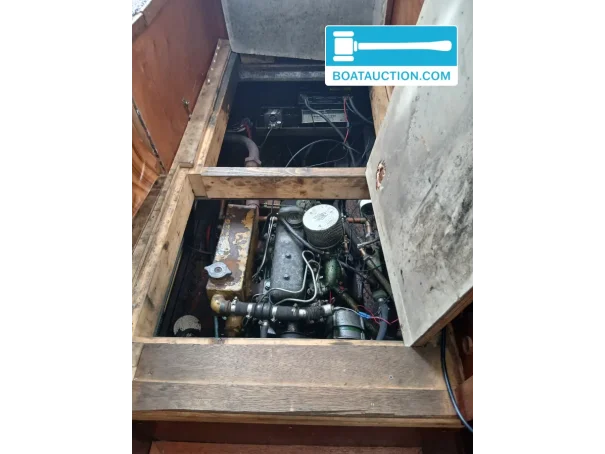 The boat is fitted with a Mercedes inboard diesel engine of 37 hp, with four cylinders and electric start. Instruments are present such as an oil pressure gauge and temperature gauge. At the same time, it is important to know that the engine leaks oil and is not operational. The engineâs functioning is therefore stated as unknown. The ignition key is also missing. For a buyer, this means she is mainly interesting as a project boat, where overhaul, repair or replacement of parts may be a realistic next step. Anyone searching for a motorboat project, steel motorboat with diesel or refurbishment motorboat will find a boat here where the technical side clearly requires attention.