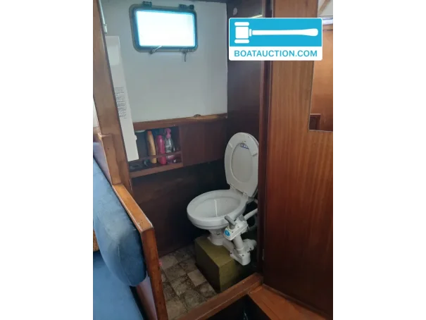 On board there are facilities that make staying aboard pleasant. She is equipped with a refrigerator, a cooker, mattresses and hot water, making weekend trips and holiday days quite feasible once the technical aspects and exterior have been brought up to standard. The toilet is manual and the toilet discharge goes directly to open water. This is important information for anyone intending to use her in different cruising areas and who needs to take local regulations and personal preferences into account. Steering is via a wheel from an outside helm position, which many boaters appreciate for the direct connection with the surroundings while underway.