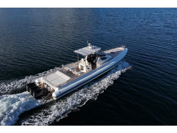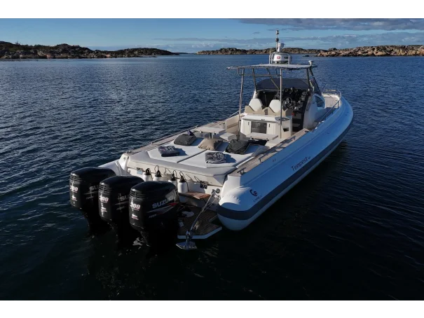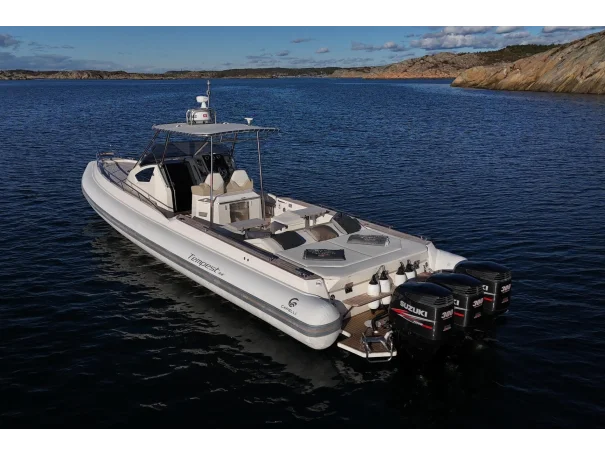 The Capelli Tempest 44 is one of the most capable RIBs ever built - a 13-metre Italian performance machine designed to eat up coastal miles in comfort and arrive fast. Triple Suzuki DF300 APX outboards deliver 900 horsepower through a deep-V fibreglass hull, and a top speed north of 45 knots means she covers water faster than almost anything in her class.