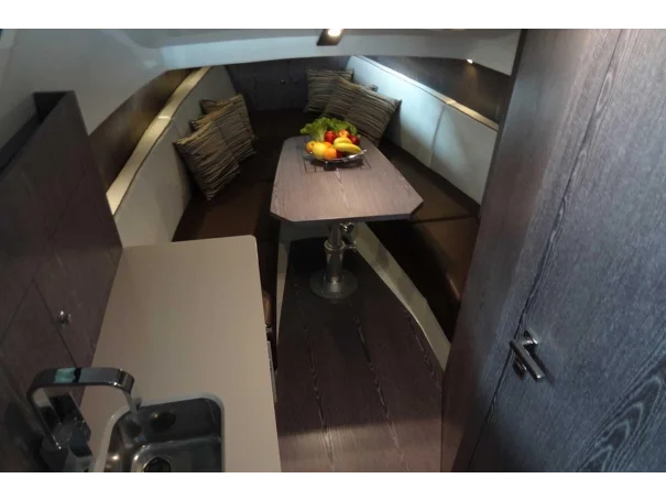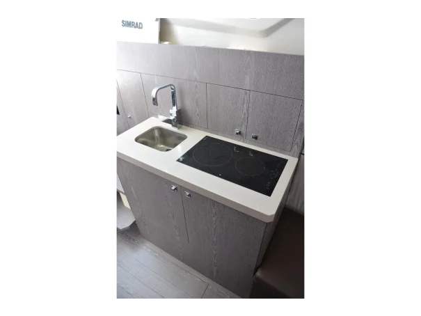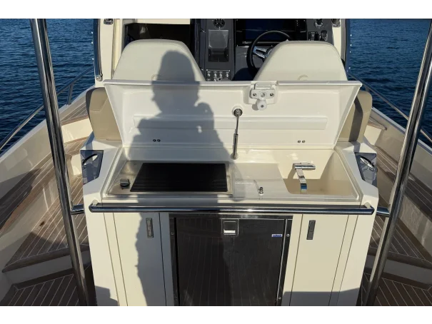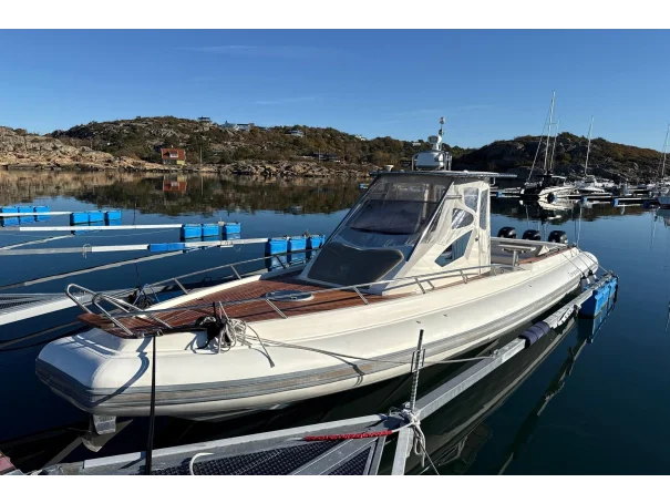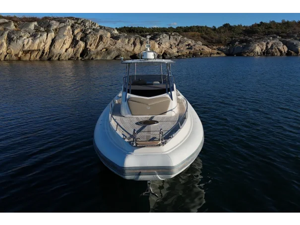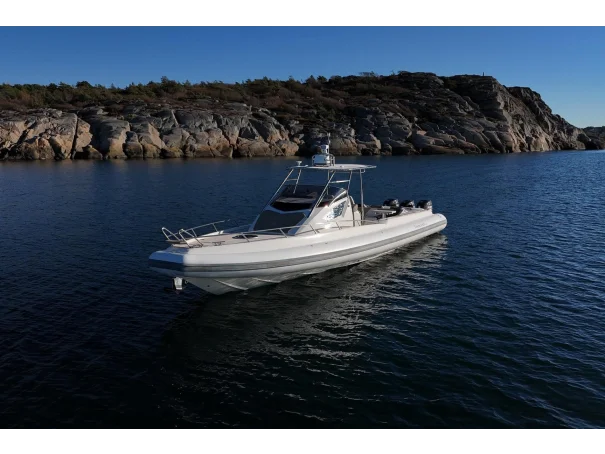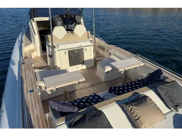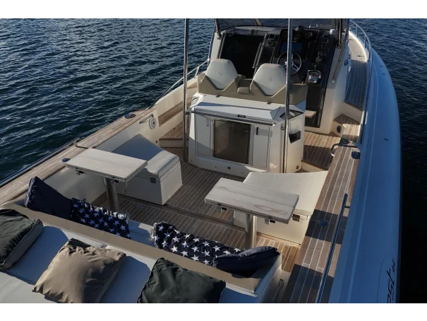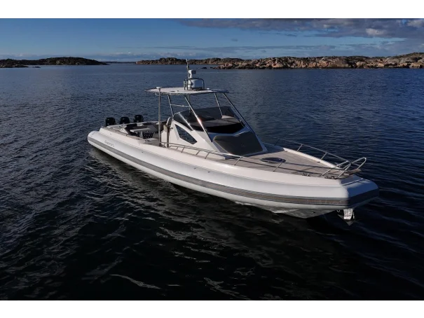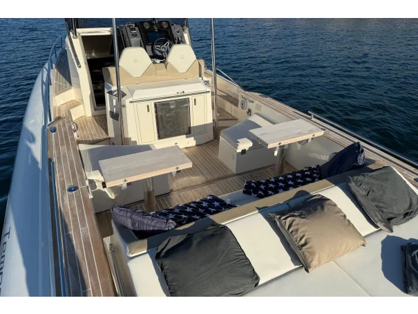 Below deck she offers a cabin, heads and hot water - genuine comfort rarely found in a RIB of this size. On deck, joystick control, hardtop, cockpit cushions, table and shower make her homely on a long day passage or a summer afternoon at anchor.