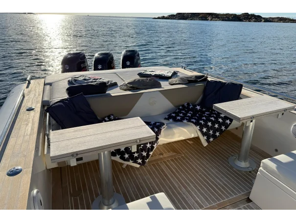 Delivered new in June 2015, this Tempest 44 has been maintained to a high standard throughout her life and is currently stored on a lift in Gothenburg, Sweden. All three engines have just undergone a full major service at an authorised Suzuki dealer, with hours standing at just 235, 248 and 238. Two new batteries have been fitted, and the Dometic generator has been freshly serviced with just one hour on the clock.