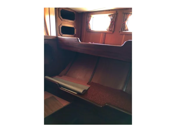 Twin Mercedes diesel engines — an OM615 and an OM616 — drive her at a comfortable 7 knots cruise, with redundancy built in from the keel up. A bow thruster handles marina work with confidence. With 5,000 litres of fuel capacity across two tanks, range is a matter of ambition, not anxiety.