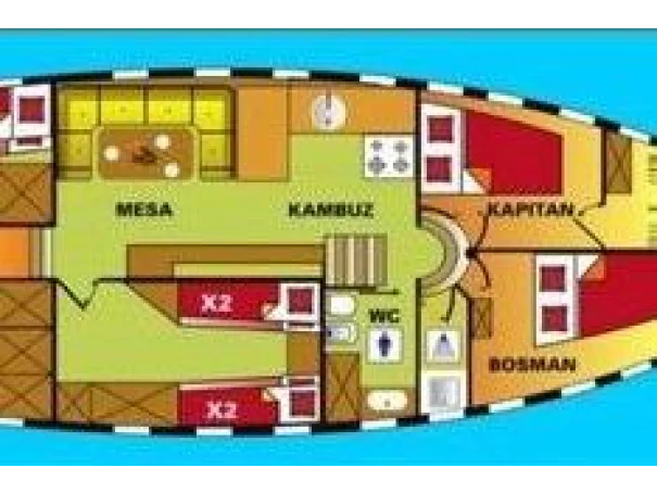 At 18.6 metres on the water, with a lifting keel that drops from 1.25m to 2.45m, she is equally at home threading the shallow anchorages of the Adriatic as she is pointing offshore into open ocean. CE Category A certified and Slovenian registered, she has earned her bluewater credentials.