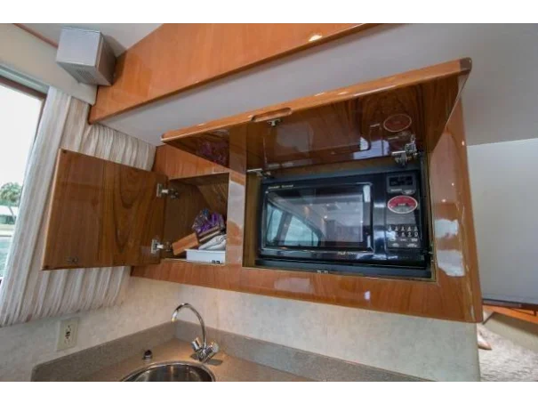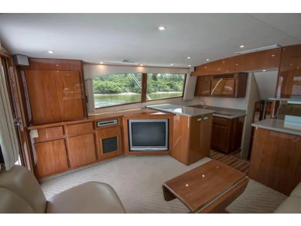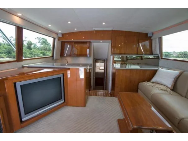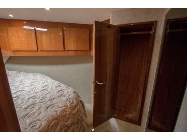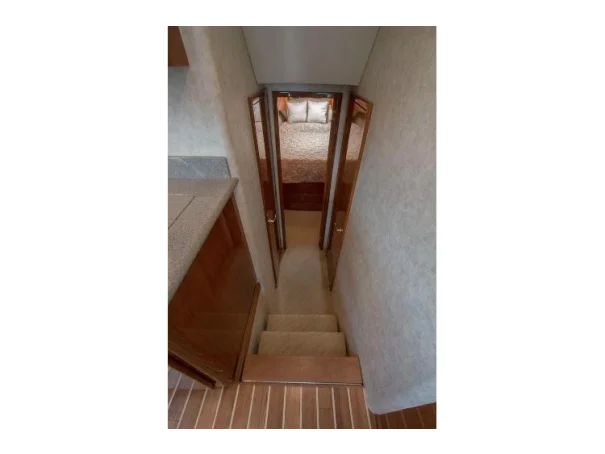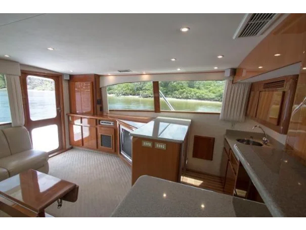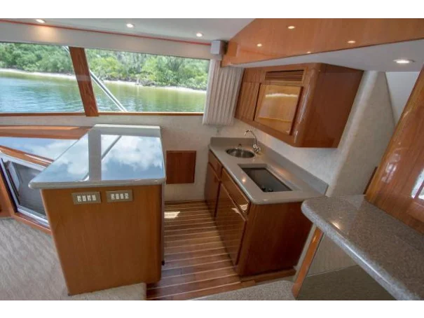 Twin diesels, flybridge helm, and a layout refined over years of production make the Egg Harbor 43 as capable on the run out as it is on the grounds. Below decks, the accommodation is comfortable without being fussy - a proper galley, heads, and enough berths to keep a fishing crew fed and rested between sessions.