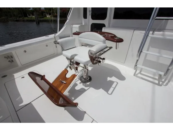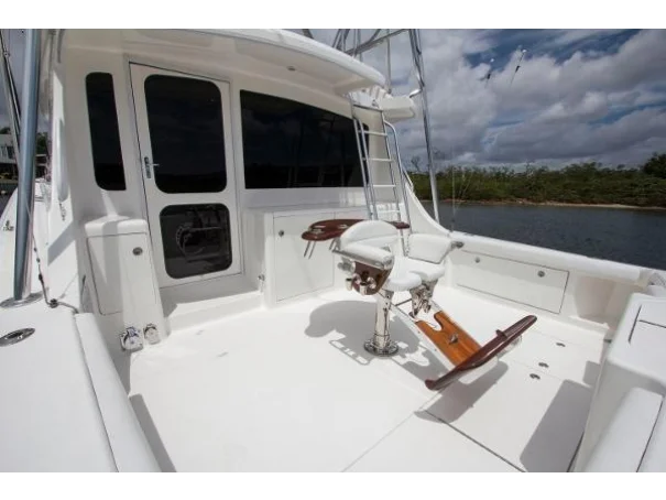 The cockpit is built around the fight. Fighting chair, transom door, livewell, and rodholders arranged for serious offshore work - not weekend dabbling. When something big takes the bait off the Moroccan coast, this is exactly where you want to be standing.