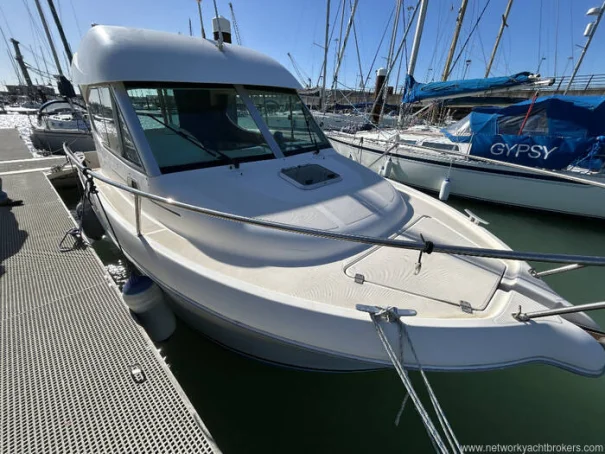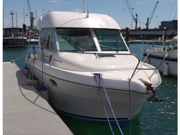 Built in 2007, this Jeanneau Merry Fisher 805 has a white GRP hull and decks with non-slip surfaces. It has a teak seats in the cockpit aft cockpit area. Wheel steering. Aluminium toe rails. Stainless steel stanchions, pulpit. Glass windscreen. Walk through the transom gate to the bathing platform. Teak battens to the bathing platform. Self-draining cockpit.Was last out of the water in April 2026 when her hull was polished, and anodes changed. The owner is only selling as he does not have time to use her.