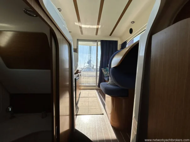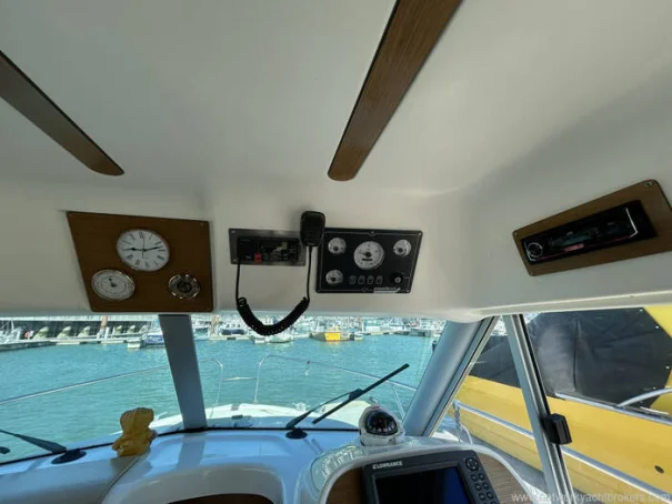 Well equipped, the specification includes a chartplotter, bow thruster, fridge, electric windlass, and gas hob, offering everything needed for comfortable cruising and practical boating.