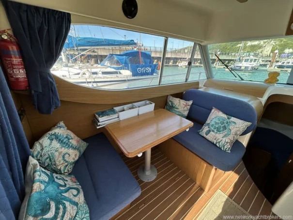 Designed with practicality and comfort in mind, the Merry Fisher 805 offers four berths across two cabins, including a separate forward master cabin and a convertible saloon, making her ideal for extended weekends aboard. The enclosed heads compartment features hot and cold water, providing excellent onboard convenience.