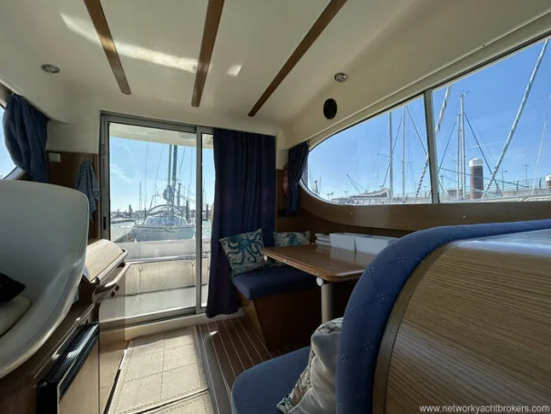 The bright and spacious wheelhouse saloon features a level floor throughout and large panoramic windows, giving superb 360-degree visibility and creating a sociable, all-weather living space. Fitted with large windows, this area remains warm and comfortable even in less favourable conditions, extending your boating season considerably.
