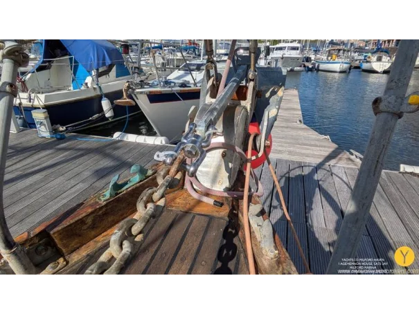 Sails and Rigging: Bermudan sloop rig. Mast removed and refurbished in 2007, along with a new tabernackle in mahogany with new mast bolts. All galvanised standing rigging was replaced in 2007.