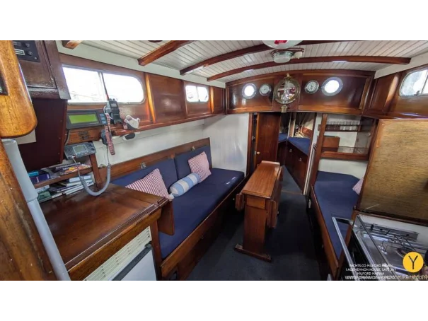 Main saloon, with seating and storage. Coverts to 2 berths.