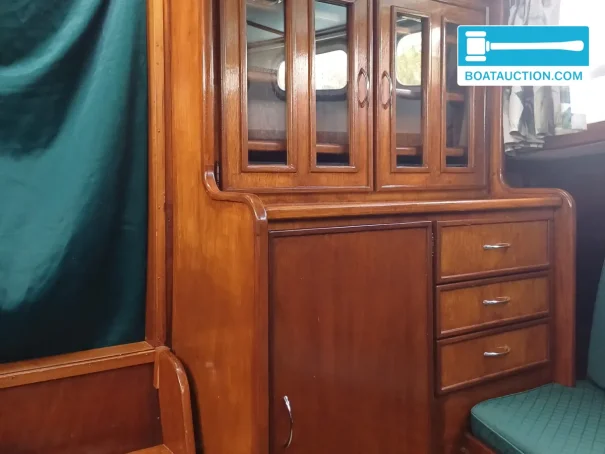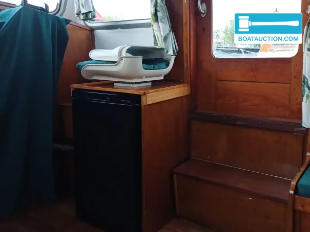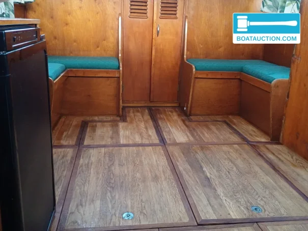 on board youâll find, among other things, a fridge and freezerâspecifically, a new thetford n4080e+ absorption refrigerator with freezer is installed. there is also a dinette, mattresses and a cooker. the water tank has a capacity of approx. 300 litres, which is convenient for multi-day trips. the toilet is manual and discharges directly to open water. furthermore, there is shore power, a battery charger and an inverter on a 12v system, making marina stays and the use of onboard equipment practical. the oak floor and teak doors have recently been oiled, contributing to a warm interior atmosphere.