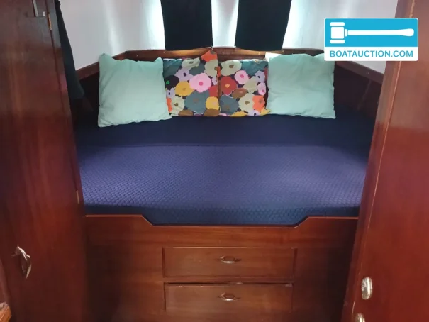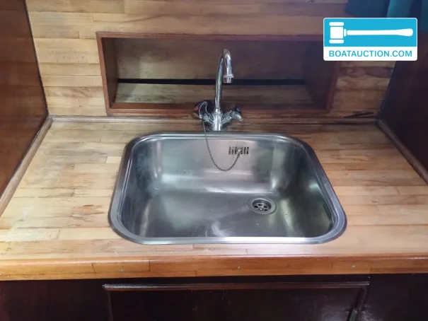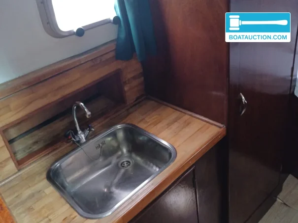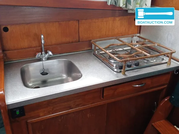 she has two fixed berths plus three additional berths. in the sleeping cabin there is a double bed with new mattresses, which are included in the sale. the dinette converts into a sleeping berth, giving flexibility for guests or (grand)children. the galley is located forward and is fitted with storage space, a display cabinet, a 3-burner gas hob and a tap with hot and cold water. this makes her suitable for weekend trips, but also for longer holidays on the frisian lakes or other inland waters where you like to live independently on board.