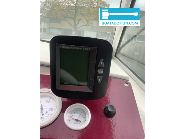 For those who like to stay on course and keep an eye on depth, the onboard electronics are a strong point. She features a Lowrance fishfinder and depth sounder, combined with GPS and chartplotter functionality. This makes her interesting for both cruising enthusiasts and sport anglers who want to target specific spots. In search terms such as âmotorboat with chartplotter and fishfinderâ and âfishing boat with Lowrance navigationâ, this equipment matches well with what many buyers expect today. With two batteries on board, there is also a solid basis for the electrical systems.