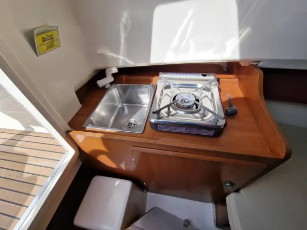 Sapphire is Cap Camarat 755 WA built in 2005. She is powered by a 250hp Mercury Verado Outboard. She embodies elegance and versatility in the world of yachting. Sapphire stands out for its modern and dynamic design, offering a sailing experience that is both efficient and comfortable. The high-quality finishes and sophisticated details add a touch of luxury to the whole. The cockpit is equipped with the latest navigation technology, providing complete control over the water. With its elegant cabin, well-equipped kitchenette and comprehensive sanitary facilities, the Cap Camarat 755 WA ensures a comfortable stay at sea. The stable hull and exceptional maneuverability of this boat guarantee confident navigation, whether for outings with family, adventures at sea or exciting fishing activities. This boat offers an exceptional maritime experience for the most demanding boating enthusiasts.