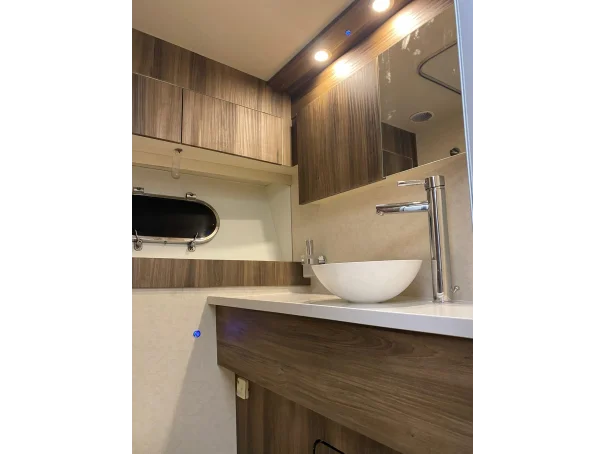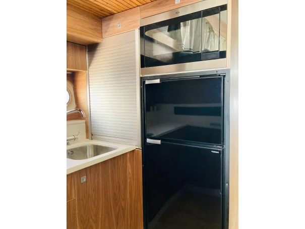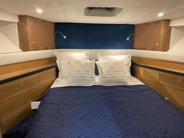 La Princess 415 es una embarcación en unas muy buenas condiciones. La próxima inspección técnica (ITB) está programada para el año 2024, y está registrada en España bajo la lista 6a. Esta embarcación se utiliza principalmente para charters y tiene una capacidad máxima de 12 personas. Ofrece dos cómodas cabinas para la comodidad de los pasajeros. Su diseño y funcionalidad hacen de esta embarcación una opción atractiva para aquellos que buscan explorar las aguas con estilo y confort. Con su impresionante rendimiento y capacidad para acoger a un grupo selecto de personas, la Princess 415 es sin duda una elección ideal para disfrutar de emocionantes travesías y experiencias inolvidables en alta mar. Accommodation : It is the version with two double cabins and one bathroom. It is a very spacious boat that offers excellent comfort on board. It has a 400L water tank, which is more than enough for long cruises.