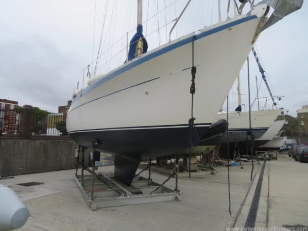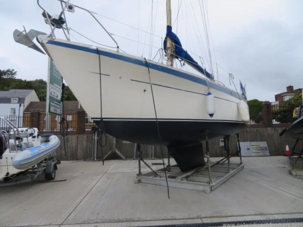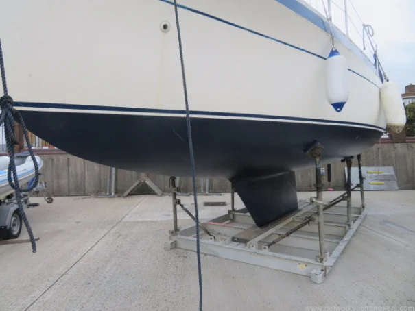This Moody 33 Mk I Centre Cockpit was built by Marine Projects (Plymouth) in 1980 to an Angus Primrose design. The vessel has a grey GRP hull, superstructure and decks with grey moulded non-slip deck surfaces, a Fin keel with a skeg-hung rudder and cockpit steering wheel, along with a self-draining cockpit. This vessel was has a limited-service history. The yacht has just been serviced in September 2025, including antifouling, the keel taken back to bare metal, primed, and antifouled. All seacocks have been serviced, a new cutlass bearing has been installed, and a new bootline has been painted. Furling headsail gear and outboard engine have been serviced, and the main engine has been checked - she is ready to sail away.