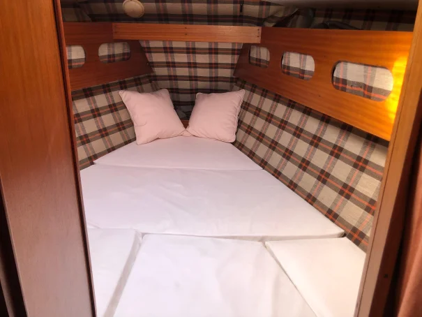 El barco se restauró completamente en 2019, el camarote de popa se convierte en una cama doble.