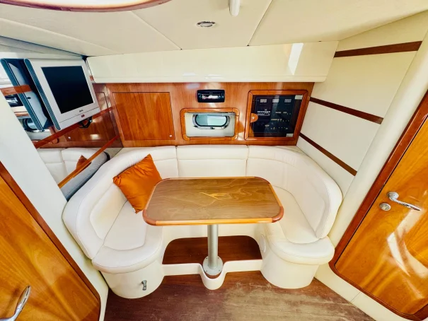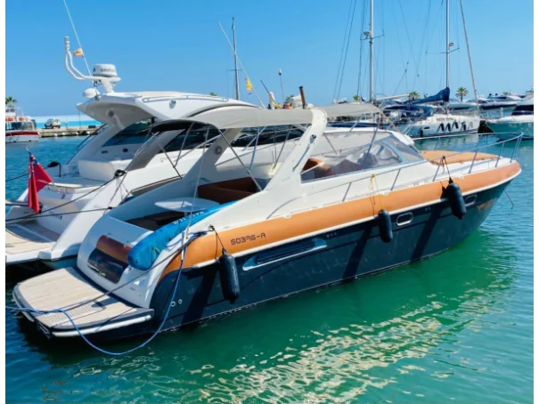 2006 Marine 345Remarks : We present this excellent Airon Marine 345 from 2006. She is VAT-registered and has been well-maintained. She is powered by two 260 hp Volvo Penta D4-260 engines. This unit features a teak gangway and a modern interior, with ongoing technology upgrades, including the latest generation Raymarine chart plotter. It has electric toilets and an electric anchor. Apart from having two powerful engines, it features a bow thruster, which helps manoeuvre it easily. Don't miss this opportunity and contact us.
