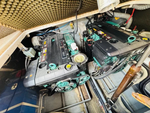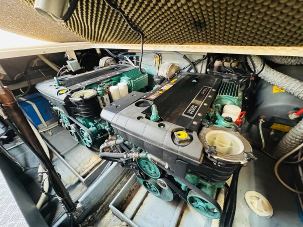 Two Volvo Penta D4-260 engines power this boat: Engine 1 has approximately 639 hours. Engine 2 has approximately 649 hours.