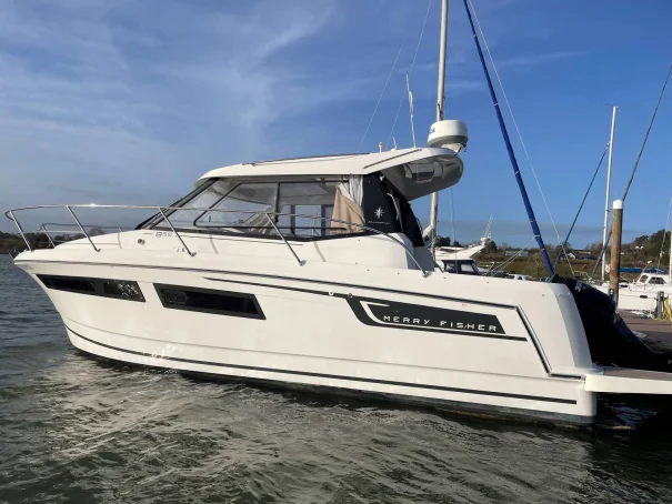 This Jeanneau Merry Fisher 855 has an excellent inventory and is easy to walk forward in helped by her asymmetrical deck layout. She has the added advantage of a sliding door at both the helm and aft for quick access to mooring lines etc. She is in lovely condition and viewing is highly recommended.