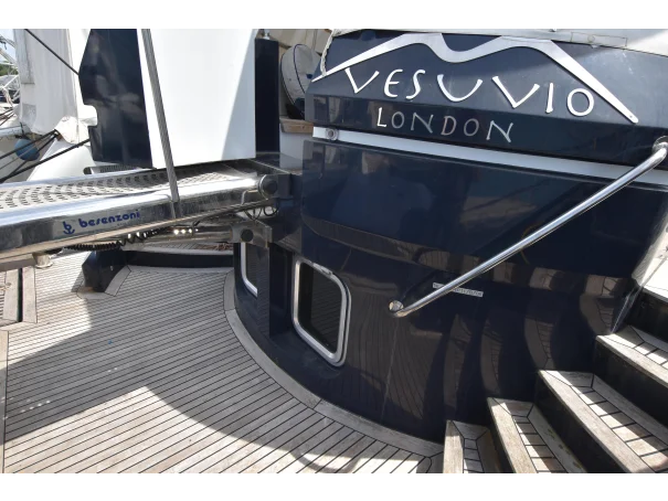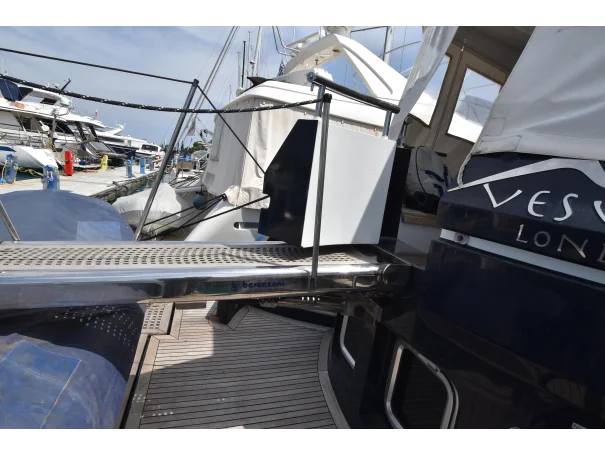 Large Hydraulic aft swim platform which descends below the water line to facilitate the easy launch and retrieval of the tender.