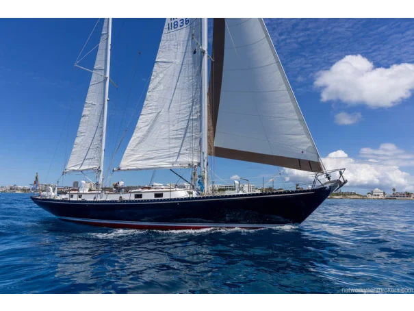 Southerly was originally commissioned for a flag officer of the New York Yacht Club where a half model now hangs. Classic lines with ketch rig and lifting keel this is a modern classic. Now a comfortable and fast cruising yacht that has been maintained and upgraded. Her ketch rig allows for flexible sail plan and low center of gravity providing stability. Southerly's racing success was recorded by America Cup sailor Gary Jobson who sailed her regularly who commented on her balanced lines. A fine example of yachting history and heritage. Many upgrades, engine 2017, electronics & sails 2021, standing rig 2023. Major bright work maintenance in 2024. This classic cruising yacht with lifting keel allows for close shore anchoring on inlets and beaches denied to many other yachts and indeed many smaller vessels and at the same time a capable trans-ocean fast passage yacht. Viewing in Antigua by arrangement.