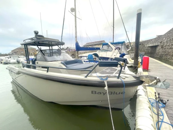 BayBlue is a well-equipped Dromeas D28 WA offering versatility and functionality for various on-water activities. The boat features numerous upgrades that enhance its usability and appeal. The signature Adam Younger stepped hull and deep V design provide stability and performance in challenging conditions, making it a capable vessel for adventurous trips.