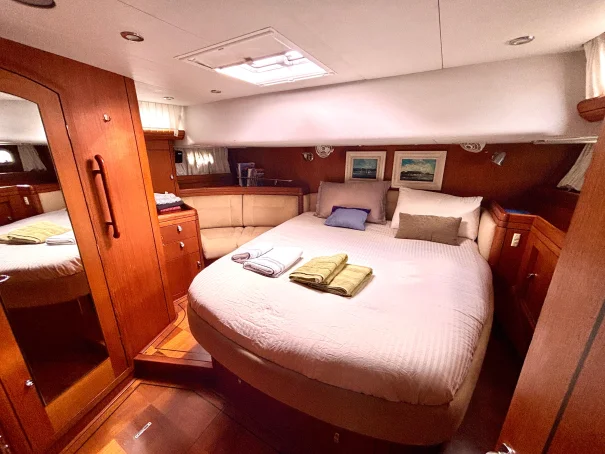 Forward Cabin: This cabin features a large double berth, overhead hatches for natural light and ventilation, and ample storage in drawers and hanging lockers.