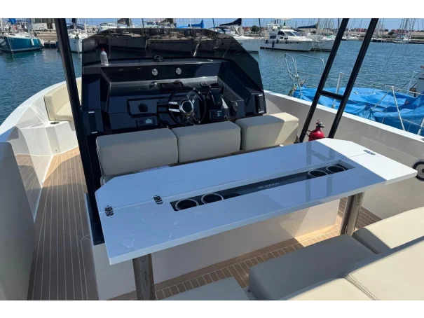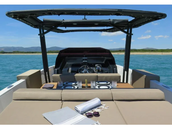 One of the standout features is the hidden outboard engine system, which enhances the boat's aesthetics and contributes to a quieter, more enjoyable ride. The D28 Open can reach up to 38 knots, ensuring thrilling water sports or coastal cruising performance. Its high-quality finishes, customizable options, and attention to detail make it a premier choice for boating enthusiasts seeking style and substance.