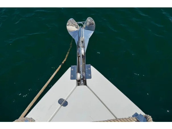 Soporte de ancla, ancla, cadena y molinete eléctrico