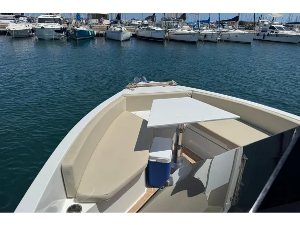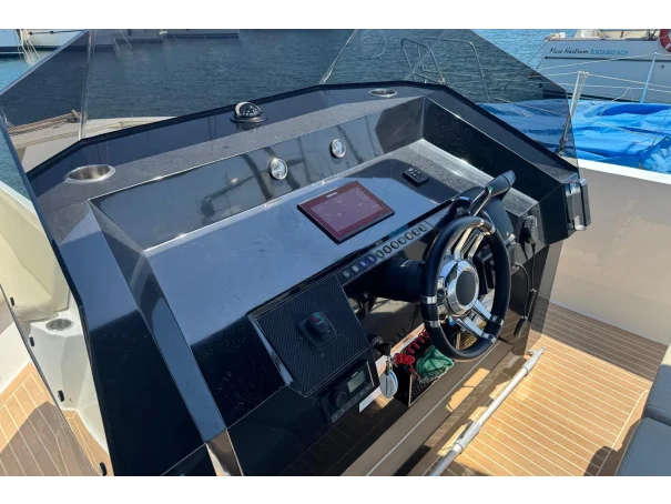 El diseño innovador presenta una disposición con consola central, que permite un fácil acceso alrededor de la cubierta y mejora la experiencia social a bordo. Una de las características más destacadas es el sistema de motores fueraborda ocultos, que realza la estética de la embarcación y contribuye a una navegación más silenciosa y agradable. El D28 Open puede alcanzar hasta 38 nudos, asegurando un rendimiento emocionante tanto en deportes acuáticos como en cruceros costeros. Sus acabados de alta calidad, opciones personalizables y atención al detalle lo convierten en una opción de primera para los entusiastas de la navegación que buscan estilo y sustancia.