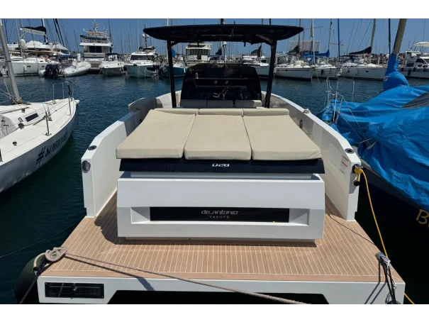 El De Antonio Yachts D28 Open es una embarcación a motor versátil y elegante para quienes buscan un day cruiser lujoso y funcional. Con una eslora de 7,99 metros y una manga de 2,99 metros, ofrece un amplio espacio y confort para hasta diez pasajeros.