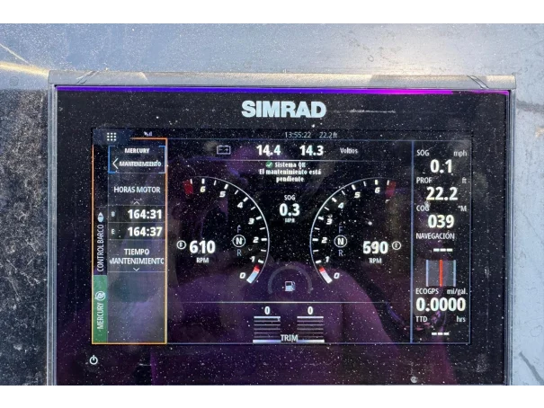 Impulsado por dos motores fueraborda Mercury V6 FourStroke de 200 HP cada uno (400 HP en total), este De Antonio 28 ofrece un rendimiento excelente, gran maniobrabilidad y una eficiencia óptima en el consumo de combustible. Con solo 80 horas de motor, el barco se encuentra en estado impecable y aún cuenta con la garantía oficial de casco y motores.