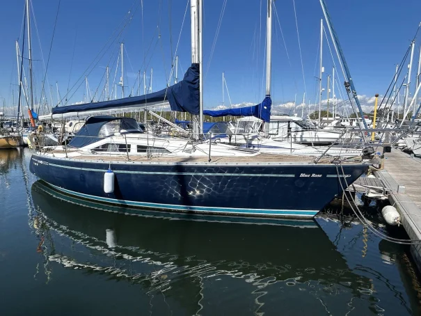 The Maxi 1000 is a well known fast family cruiser which offers excellent cabin comfort and easy sail handling with her self tacking jib and all lines led aft. Her tiller designed pilotage means that she has a large and spacious cockpit. Her sugar scoop stern and navy blue hull means she will surely turn heads.