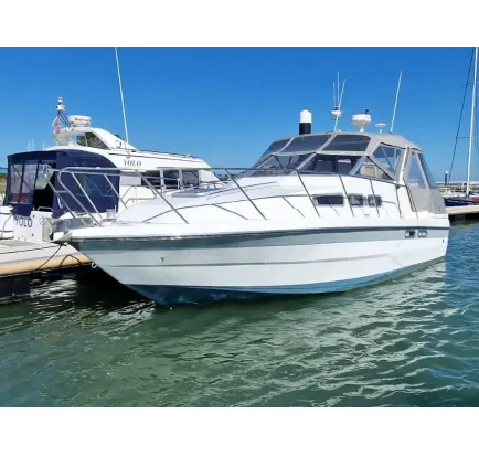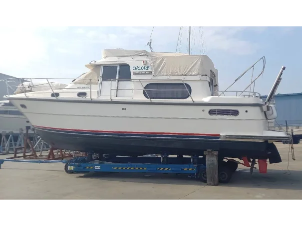 This six berth sought after "Nimbus 37 Trawler" motor boat was built in 1996 (1997 Model) and is powered by shaft driven twin Volvo 200hp diesel engines, with about 1750 engine hours with a cruising speed of about 15 knots. Her layout consists of twin steering stations, a bright and airy saloon / wheelhouse / galley, heads with shower, owner's cabin and a visitor's cabin. Her inventory includes, bow thruster, trim tabs, davits, hydraulic gangway, hot air heating, shore-power, radar, chart-plotter, autopilot, DSC VHF, electric windlass and more. This boat is Irish owned is E.U. VAT PAID.