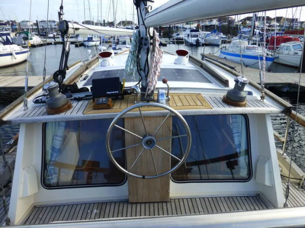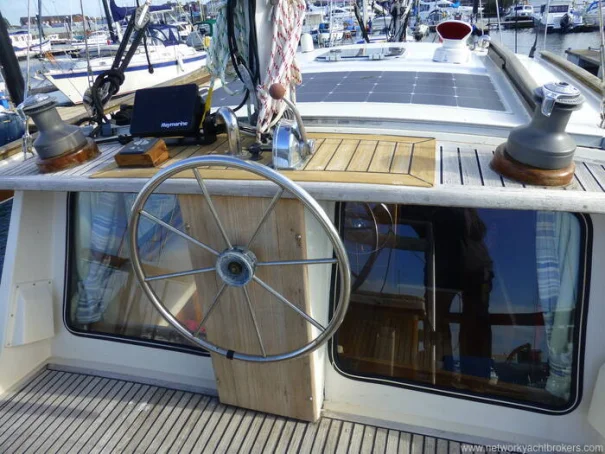 Easy access to the wheelhouse with port and starboard sliding doors, good walkaround decks, aft double berth en suite cabin and forward twin/double berth cabin. This Nauticat 33 is powered by a Ford 80hp diesel engine and has a bow thruster fitted to help manoeuvrability. Standing rigging renewed 2022. Ever popular, 1,160 of these strong and sturdy boats were built in the thirty years of production.