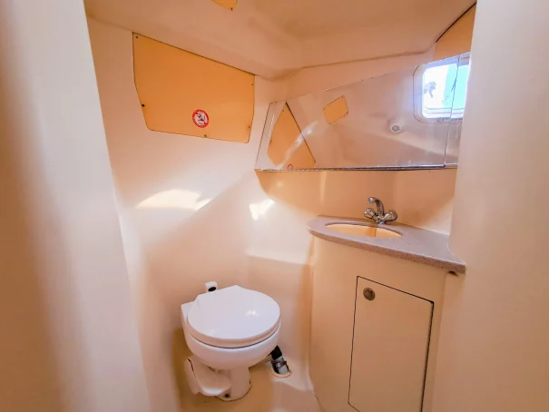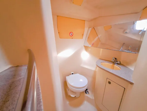 Below deck she features the sought-after owner’s layout, with one large aft cabin rather than two smaller aft cabins, providing excellent comfort and storage. The saloon is bright and welcoming with good headroom and ventilation, while the forward cabin offers privacy for guests. Importantly, both heads are fitted with fresh water vacuum systems rather than manual sea water pumps – a valuable upgrade that improves comfort and reduces odour.