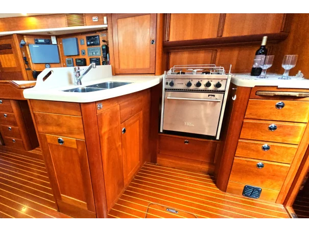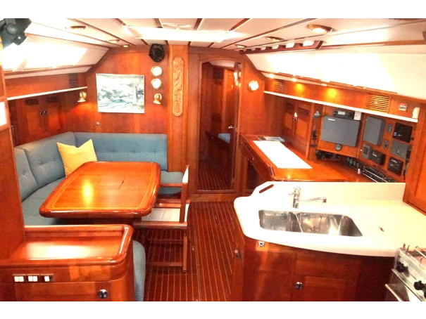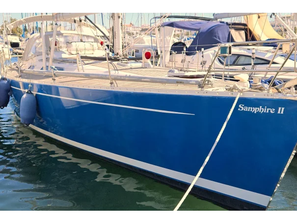 Samphire II has been continuously maintained to meet high demands. Before we bought her 2012 the wire rigging was changed and thereafter, we have made a lot of upgrades. Among the these we have re-caulked the deck and following are almost new; North Sails Full Batten Mainsail NPC Radian NorDac, North Sails Self-tacking Furling Jib w/ Battens NPC Cross-Cut NorDac, Frigonautica MF80RC Refrigerator, JEFA rudder bearings, Lewmar Ocean hatches, 4 TAB Lithium Iron Phosphate Batteries 12.8 V 200 Ah each, Side Power SE 100/185T-24V-IP bow thruster, LALIZAS ISO-RAFT, 8 Persons, Windlass Anchorlift Mako 1500 24V DC capstan model and chain. She is ready to sail.