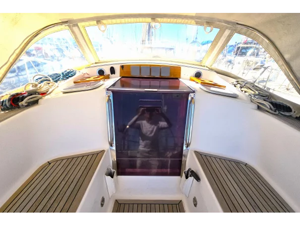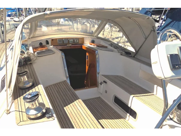 The cockpit is designed for maximum efficiency and comfort, both under sail and in harbour. The helm and the winches are positioned for exact operation with minimum effort. Wherever you sit in the cockpit, you are always comfortable. And you are seated on smooth-surfaced, top quality, hand-picked teak from sources who guarantee that the wood is grown under the control of environmental authorities. The whole cockpit layout is the result of constant development work, based on years of sailing experience, making it as near perfect as possible.