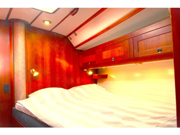 When you enter the spacious interior of a Sweden Yachts 45, you will understand the meaning of world-class joinery. Light or slightly darker mahogany, or other fine woods like teak (and in this case cherrywood) are crafted into a complete interior. With inlaid woodwork details accentuating the whole effect. Superior craftsmanship is the keynote throughout. Every piece of wood is oil varnished five times before being fitted together into modules. The floorboards are carefully insulated to eliminate the slightest creaking. Upholstery is specified by the yacht owner, in a Scandinavian design concept based on the principle that “less is more”. The whole atmosphere is one of Nordic Light, the same magic light captured by Scandinavian painters at Skagen, Denmark, at the end of the 19th century. In short, the interior of a Sweden Yachts 45 is tailored to perfection, right down to the last detail.