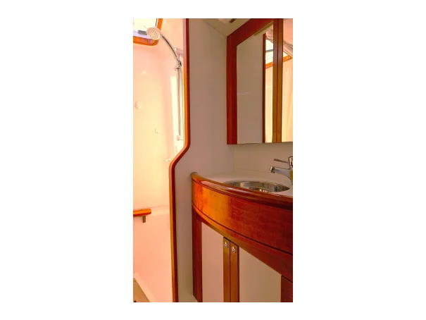 • Aft cockpit layout with six full length berths in three double cabins plus one further master saloon settee berth. Forward and aft day heads with showers.