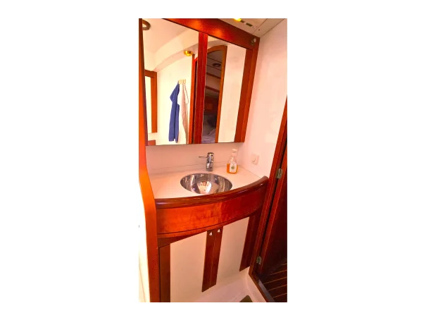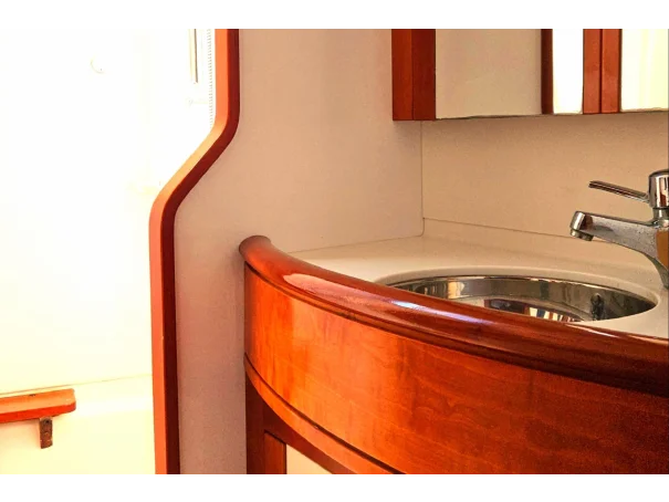 • 470 l diesel capacity in 2x stainless steel tanks located under aft beds with inspection hatches, filled and ventilated from transom