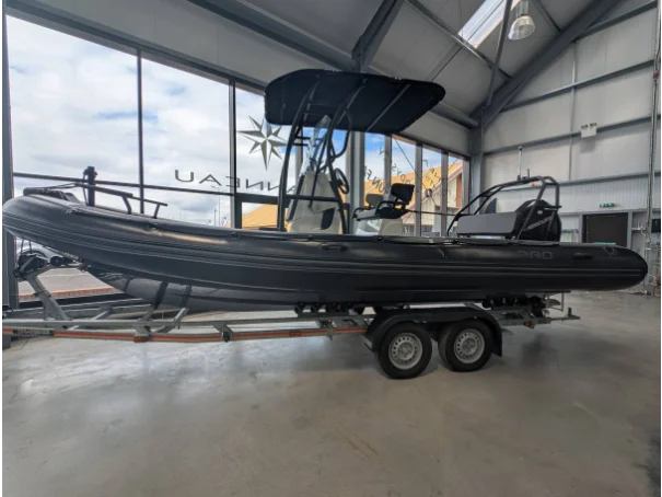 Stunning black Zodiac Pro 7 is available for sale at Euroyachts. This 7m rib is certified category B for up to 6 persons. Fitted with a 225 hp Mercury with 131 hours.