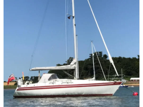 Built by Scanmar Yachts to a Rolf Magnusson design in 1990 this 345 has a white hand laid-up hull with red-style strips at the waterline and topsides. White GRP coachroof with moulded non-skid decks. Flexiteek cockpit seats and teak sole grating. It has self self-draining cockpit and anchor well. Cast iron fin keel with Whitlock wheel steering to a single rudder. Stainless steel safety rails. The yacht is currently ashore at the Medway Yacht Club, Upnor, Kent. The owner is only selling due to change in personal circumstances.