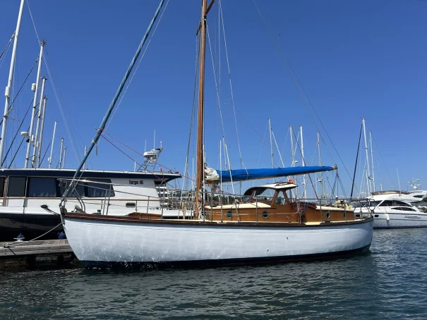 This 1970 Hillyard 9 Ton is a well-maintained and extensively upgraded example of classic British yacht design. Built by David Hillyard, she features mahogany planking on oak ribs, a replaced iroko sheer strake, epoxy- and glass-sheathed marine plywood decks, and solid mahogany cabin and cockpit combings.