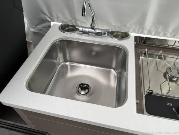 Corian covers on galley worktop above sink and stove + bar extension