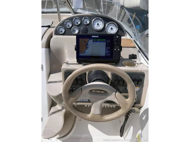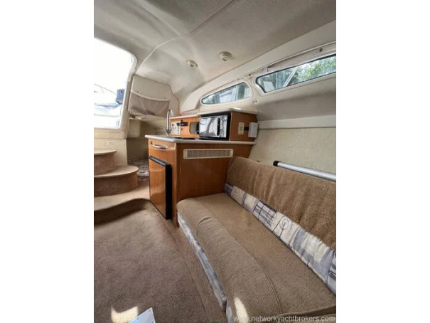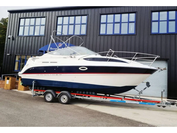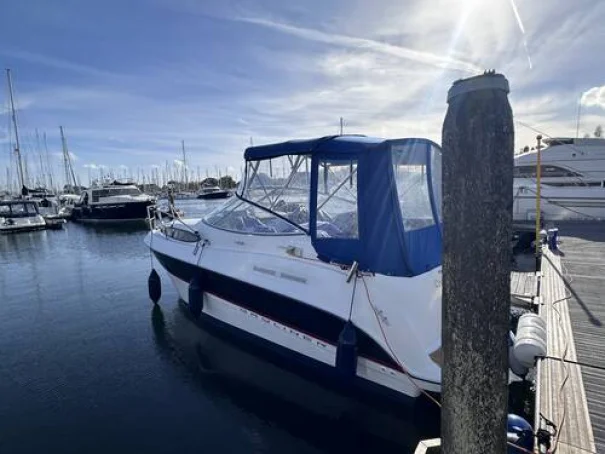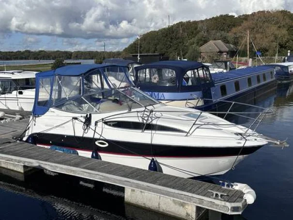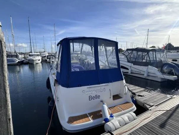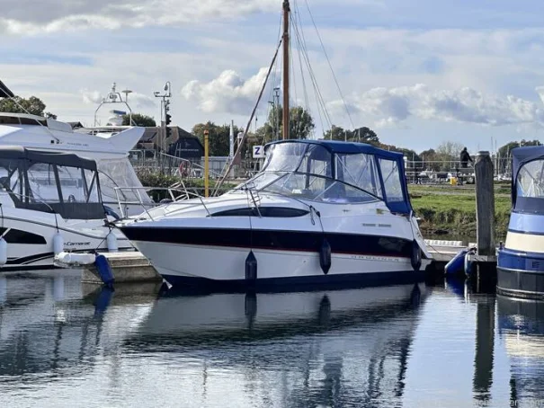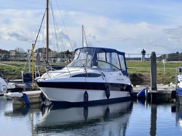The Bayliner 2455 Ciera is designed as an accessible cruiser approx. 24 ft in length. It provides cabins, a head, an L-shaped cockpit/sun lounge, and is suitable for weekend trips and overnights as well as day cruises.