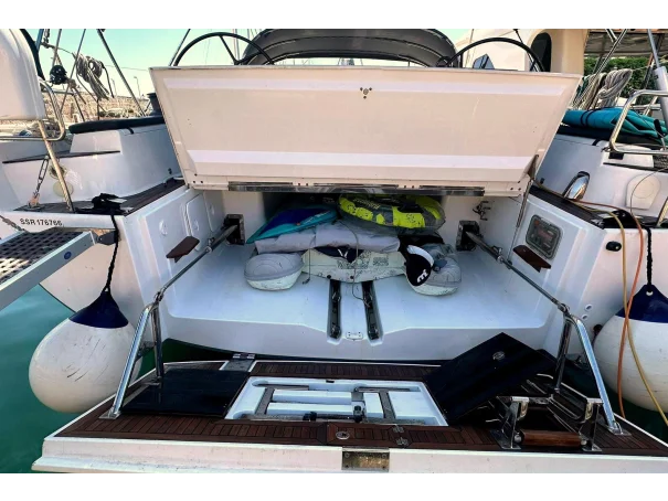 The yachts come equipped with a Generator Panda 8000i, a Victron 2020 inverter, four batteries, an engine alternator, a 240V battery charger, and two power cables, including a water maker. Last antifouling and out of the water May 2024. Previous engine service March 2025.