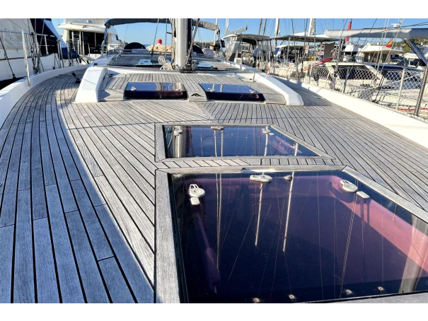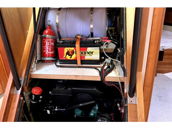 Impulsado por un motor diésel Volvo Penta D3-110 con transmisión por eje directo y hélice plegable de doble pala.La embarcación está equipada con propulsor de proa y de popa (la unidad de popa pendiente de sustitución de una pieza). Dispone además de generador Panda 8000i, inversor Victron y cargador de baterías.El aparejo, firmado por Z-Spars/Selden, cuenta con vela mayor con rizos tradicionales (slab reefing) y un inventario completo de velas, que incluye vela mayor, génova, Code 0, spinnaker asimétrico y trinqueta de tormenta.